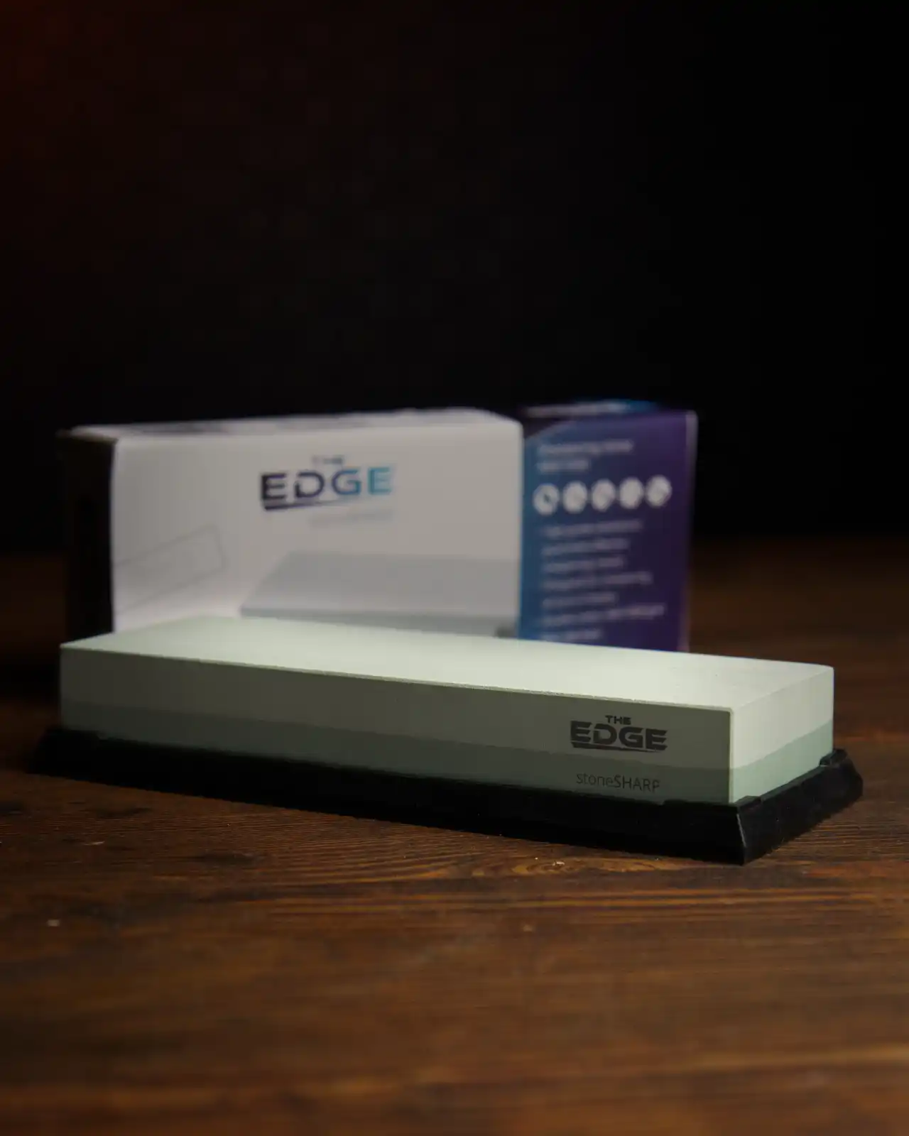 Dwustronny kamień wodny THE EDGE stoneSHARP 400/1000 to bardzo uniwersalny kamień do ostrzenia. Wykonany z syntetycznego korundu (tlenku glinu Al₂O₃) — materiału o twardości 9 w skali Mohsa, ustępującego jedynie diamentowi — zapewnia skuteczne i trwałe ostrzenie każdego noża z gładkim ostrzem.