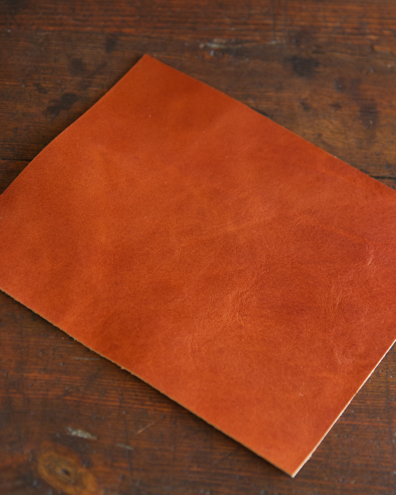 To wysokiej jakości włoska skóra bydlęca, garbowana w 100% roślinnie. Kawałek o wymiarach 17×21 cm i grubości ok. 1.1 mm w przyjemnym odcieniu karmelowym.